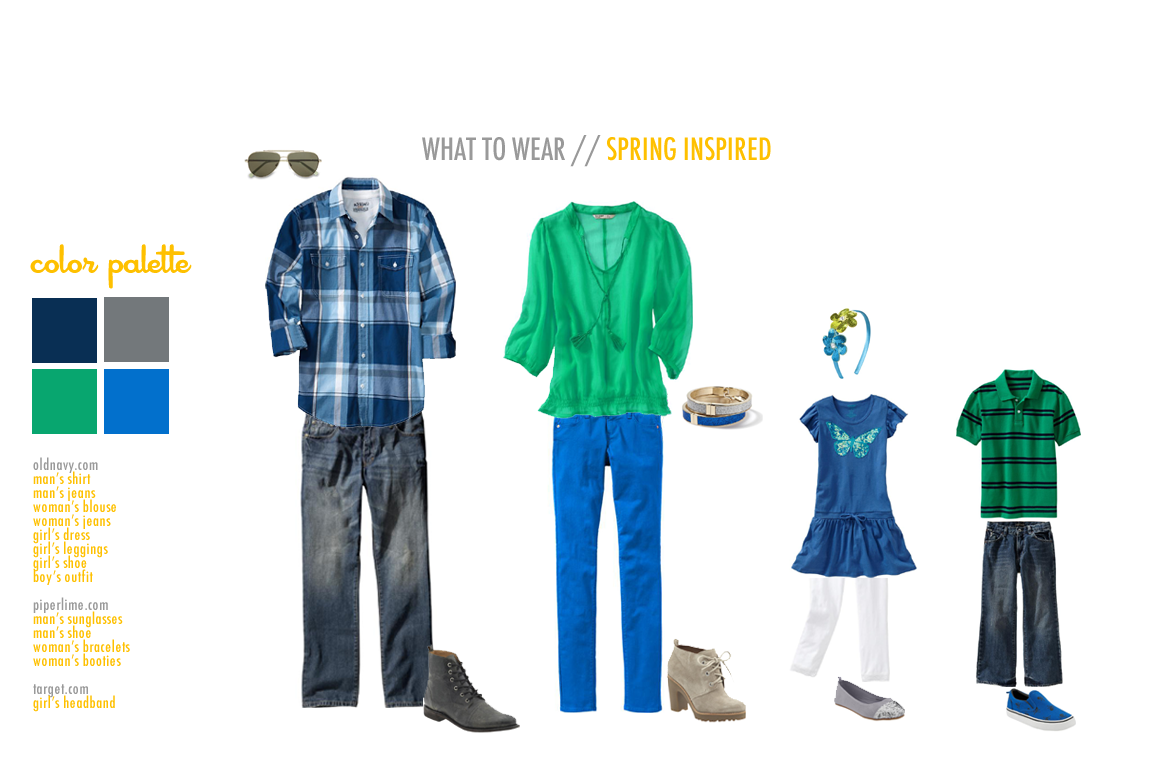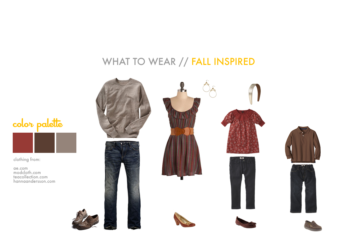 The most important thing to remember is be comfortable. Wearing clothes that you feel stiff and awkward in does not make for relaxed and natural images. Coordinated is better than matching, although it can be cute to have the kids wear elements of the same outfit.